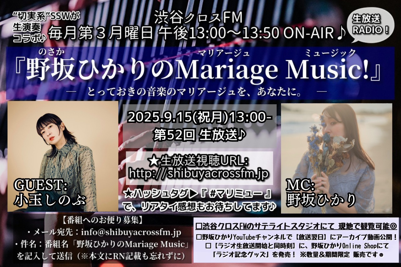 25/9/15 OA♪ ラジオ「野坂ひかりのMariage Music!」