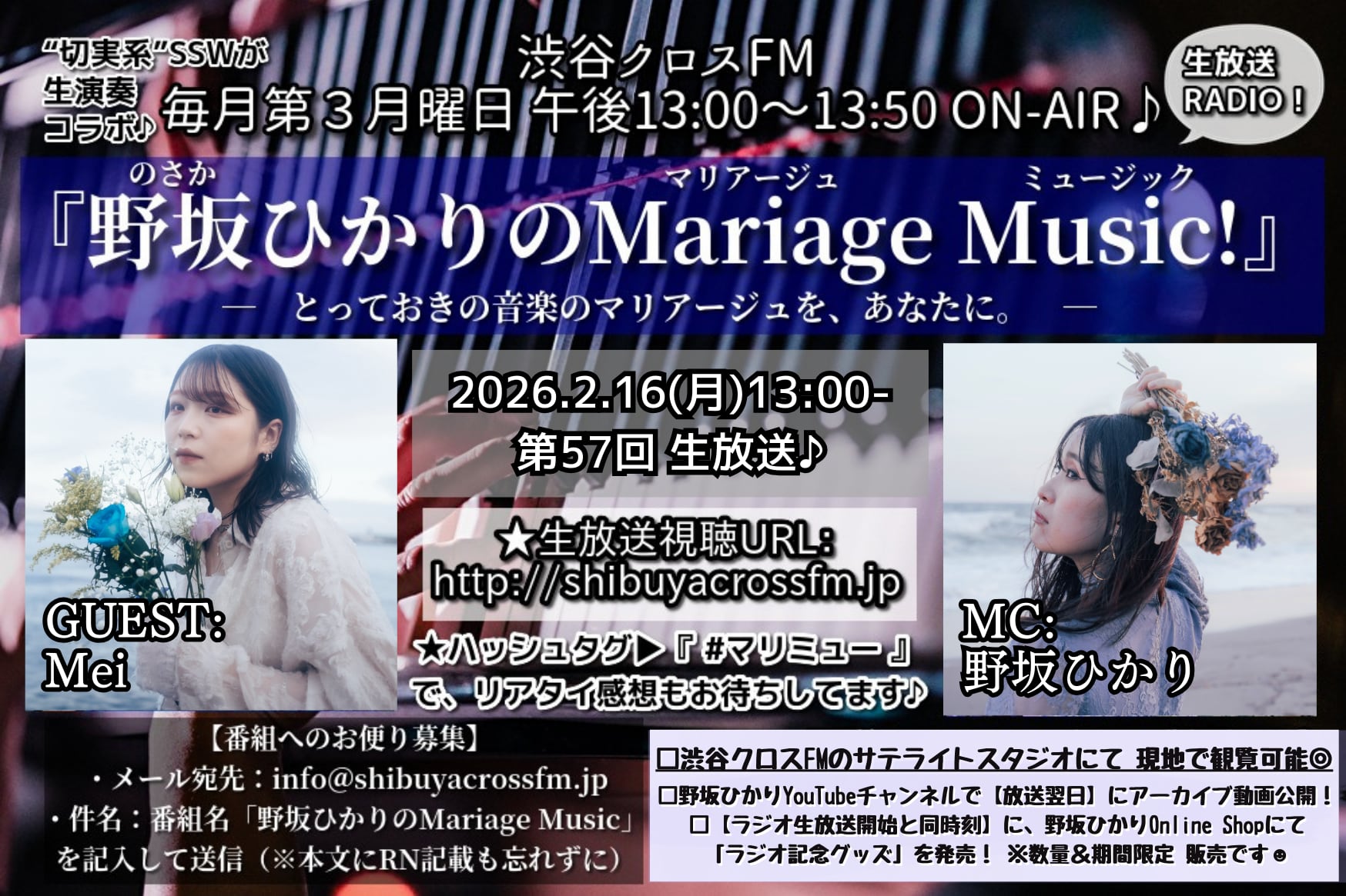 26/2/16 OA♪ ラジオ「野坂ひかりのMariage Music!」